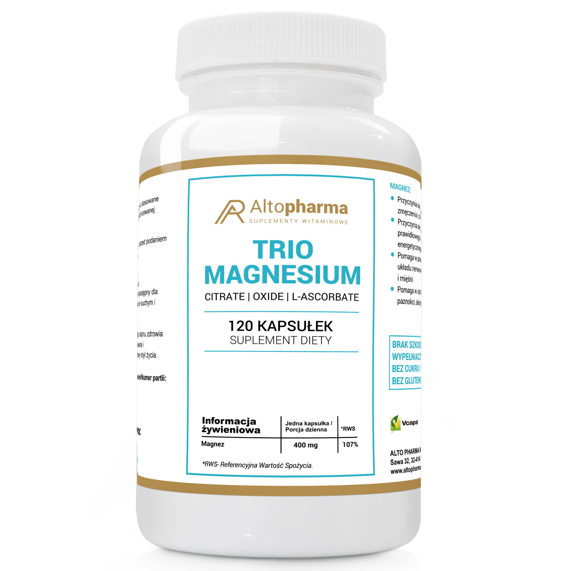 ALTO PHARMA Trio Magnesium Magnez Complex 400 mg 120 kaps.
