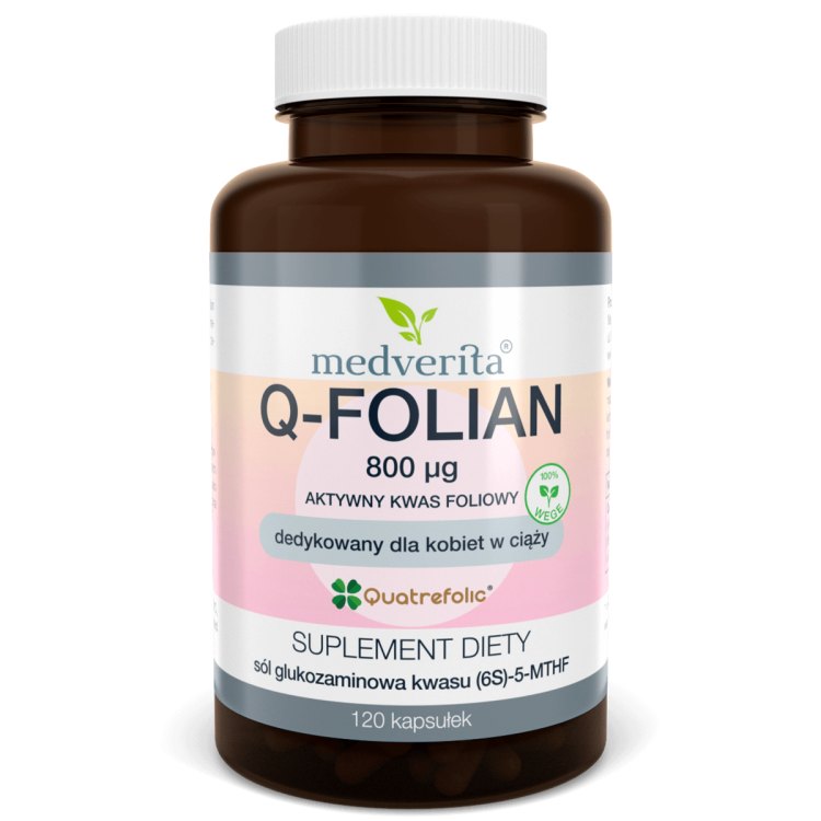 MEDVERITA Q-Folian 800 µg Quatrefolic® Aktywny Kwas Foliowy 120 kaps.