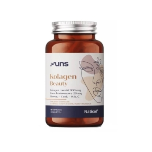Kolagen Beauty UNS to suplement diety w kapsułkach zawierający hydrolizowany kolagen morski NatiCol® 4000 oraz inne składniki odżywcze, takie jak kwas hialuronowy, witaminę C, biotynę i cynk. Produkt przeznaczony dla osób dorosłych, które chcą uzupełnić dietę w te składniki.